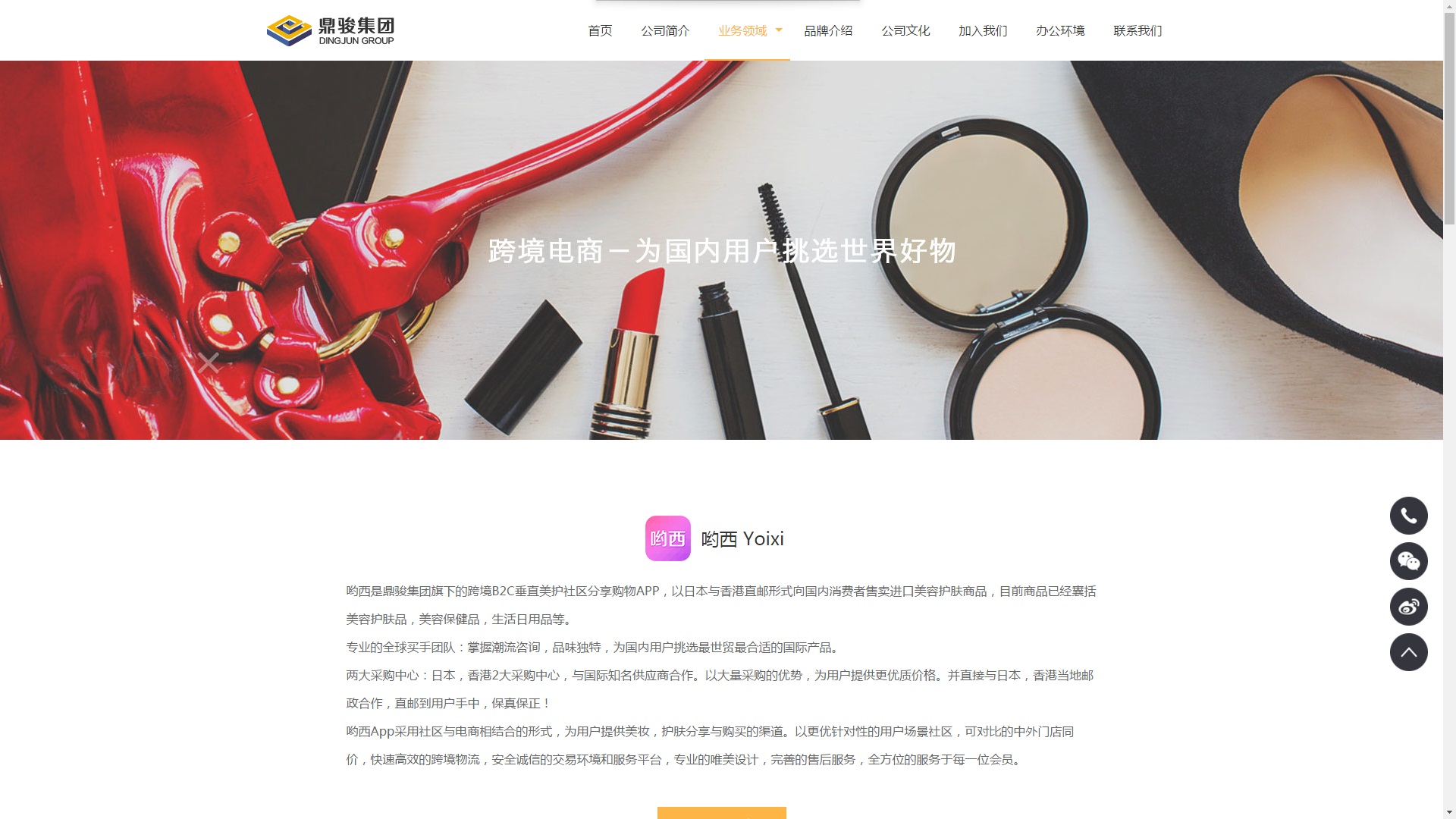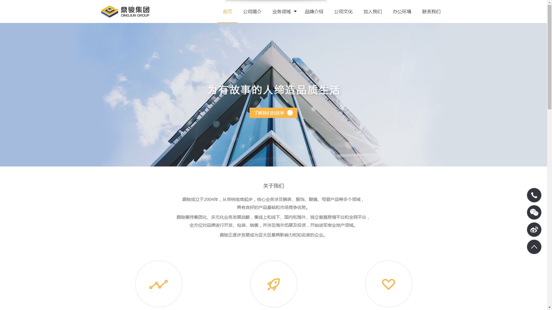 鼎駿成立于2004年,從傳統(tǒng)電商起步,核心業(yè)務(wù)涉及腕表、服飾、眼鏡、母嬰產(chǎn)品等多個(gè)領(lǐng)域,具有良好的產(chǎn)品基礎(chǔ)和市場(chǎng)競(jìng)爭(zhēng)優(yōu)勢(shì)。鼎駿秉持集團(tuán)化、多元化業(yè)務(wù)發(fā)展戰(zhàn)略,集線上和線下、國(guó)內(nèi)和海外、獨(dú)立垂直跨境平臺(tái)和全網(wǎng)平臺(tái),全方位對(duì)品牌進(jìn)行開(kāi)發(fā)、包裝、銷售,并涉足海外拓展及投資,開(kāi)始進(jìn)軍商業(yè)地產(chǎn)領(lǐng)域。鼎駿正逐步發(fā)展成為亞太區(qū)最具影響力和知名度的企業(yè)。