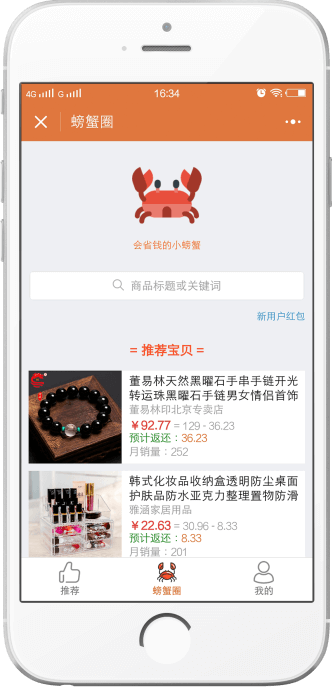 螃蟹圈簡介 《 螃蟹圈》小程序是一款購物小工具,幫助購物族方便快捷的查詢商品優惠券、購物獲返利的省錢利器。 廣州企業網站建設公司 廣州樂葵科技