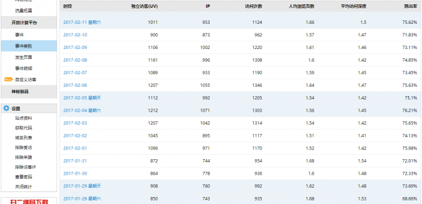 我們網(wǎng)站的統(tǒng)計數(shù)據(jù)顯示的不僅僅是用戶如何瀏覽我們的網(wǎng)站,它們廣州企業(yè)網(wǎng)站建設(shè)公司還會顯示我們是否應(yīng)該優(yōu)化網(wǎng)站的設(shè)計,這其中我們應(yīng)該查看的最重要的分析數(shù)據(jù)就是我們的跳出率。以下是在某網(wǎng)站的CNZZ(分析)部分流量截圖。從中我們可以看到,其日均跳出率已達到70%左右,也反應(yīng)了該網(wǎng)站的用戶粘度。可想而知這是多么糟糕的情況!