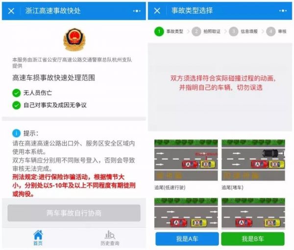 查詢和處理交通違章,一直是有車一族的痛點。“浙江高速事故快處”是十一前推出的小程序。如果車主在高速公路遭遇了車禍,在人員未受傷、雙方責任明晰、車輛依然能開動的情況下,就能使用該系統(tǒng)進行自助處理。