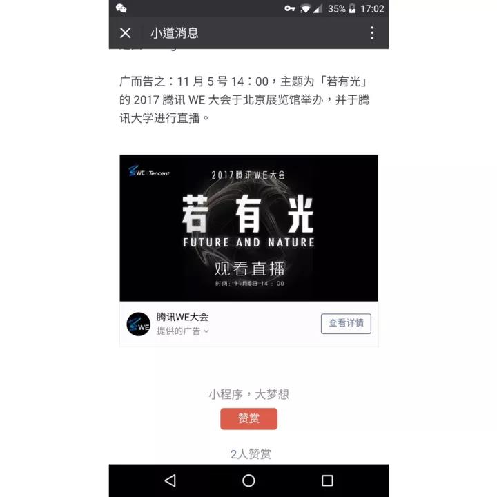最近,文章底部的一些廣點通廣告位出現小程序的符號。這代表,底部的「廣點通」廣告已支持小程序投放。
