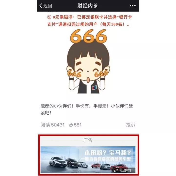 在之前,公眾號流量主、小程序廣告主只能投放直接插入在內文中的廣告,在文章底部的廣告還是第一次出現小程序的投放。