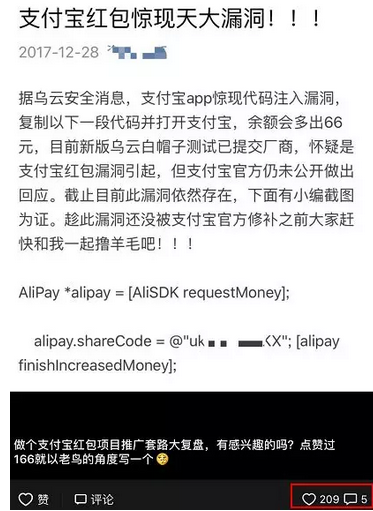 基于產品特性,微博跟微信、QQ不同的是,熱門微博評論區會是不少人的發力點。這位兄弟的套路頗有網賺界老鳥的風范,一看就是鉆研過社會工程學的,活脫脫把推廣紅包強行“解釋”成了口令紅包,反正普通用戶眼里都長差不多。趁著年底微博大v們給粉絲發福利的熱烈氛圍,類似的招照樣能玩,雖然不少網民被日醒了,但咱們人多啊,哪怕媒體喊破喉嚨,作為外行大部分人的腦子都會選擇自動屏蔽。但他的玩法仍舊不夠完美,灑家安排人去微博測試結果顯示,吱口令在微博評論區會被自動屏蔽,評論下面的評論暫時不會。要升階的話涉及一個核心小技術,那就是把吱口令轉碼成中文口令,就可以完美逃過微博屏蔽。微博主頁發條置頂微博,然后去各處發騷評論引流借助這一小技巧,制造支付寶賞金紅包就是支付寶口令紅包假象這一玩法將是下半場的階段性藍海級套路。