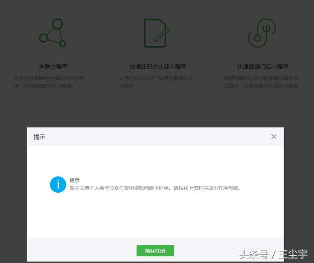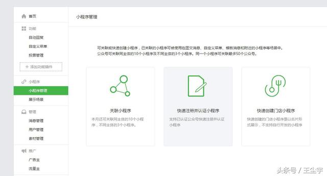 1.登錄公眾號,點(diǎn)擊“小程序管理”看到下面頁面,點(diǎn)擊“快速注冊并認(rèn)證小程序”。